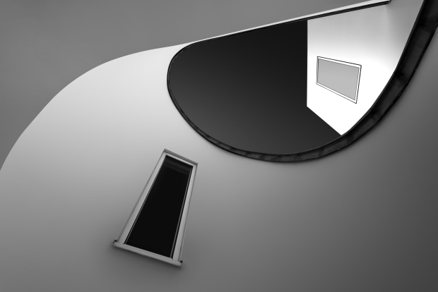 This series explores modern architecture as abstract form. In black and white, planes, curves, and voids interact in quiet tension as composition rather than function.
