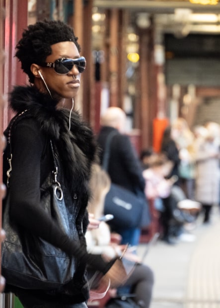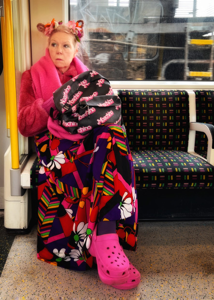 The London tube always delivers for style, diversity and the eclectic. Nose Ring standing on Barons Court posing and looking every bit the model, Clan Pink descending the stairs at South Kensington and Pink Crocs perfectly matching the District Line moquette pattern.