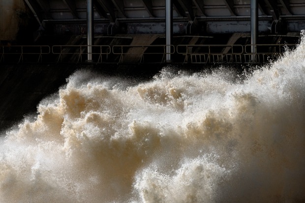 Taming the wild water after the rains at Scrivener dam.