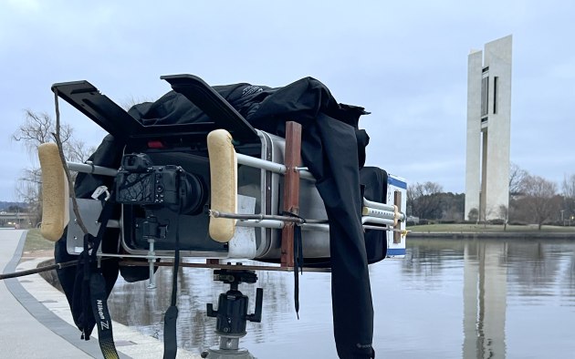 He has now built several of these cameras from various pieces of unloved junk – including discarded computer towers, bamboo sticks, fuel cans, polystyrene fruit boxes and even crutches. The idea of making cameras from trash stems from his environmentally focused arts practice, which like a number of other artists, is based on examining the environmental impact of how our culture readily discards useful objects, or technology which is just slightly 'out of date'.